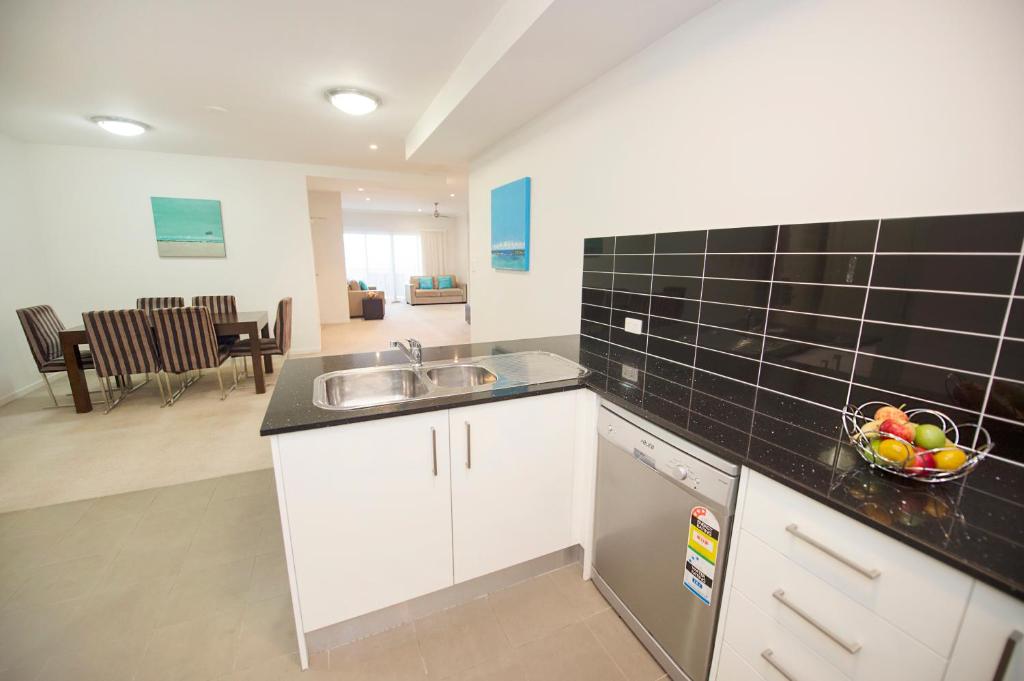 This two-bedroom interconnecting apartment features a fully-equipped kitchen, laundry, separate lounge, dining area and 2 queen-sized beds. This apartment has a balcony with views of Gladstone City or over the ocean.